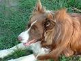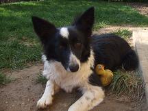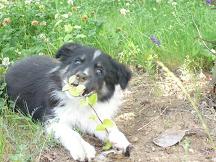 Nekem is volt egy "CSODÁ"-m, Bonnie, aki ugyan nem volt fajtatiszta, de 8o %-ban magán viselte a borderek jellemzőit. Németországban találtunk rá egy menhelyen, és azonnal beleszerettünk. Akkor két éves volt. Magunkhoz vettük, és imádtuk. Tizenkét évet töltöttünk együtt, amikor megbetegedett és nagyon rövid idő alatt itt hagyott minket. Most október végén lesz két éve, hogy eltemettük az udvarban, kedvenc helyén. |